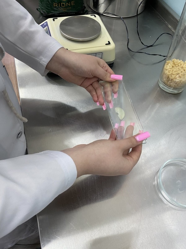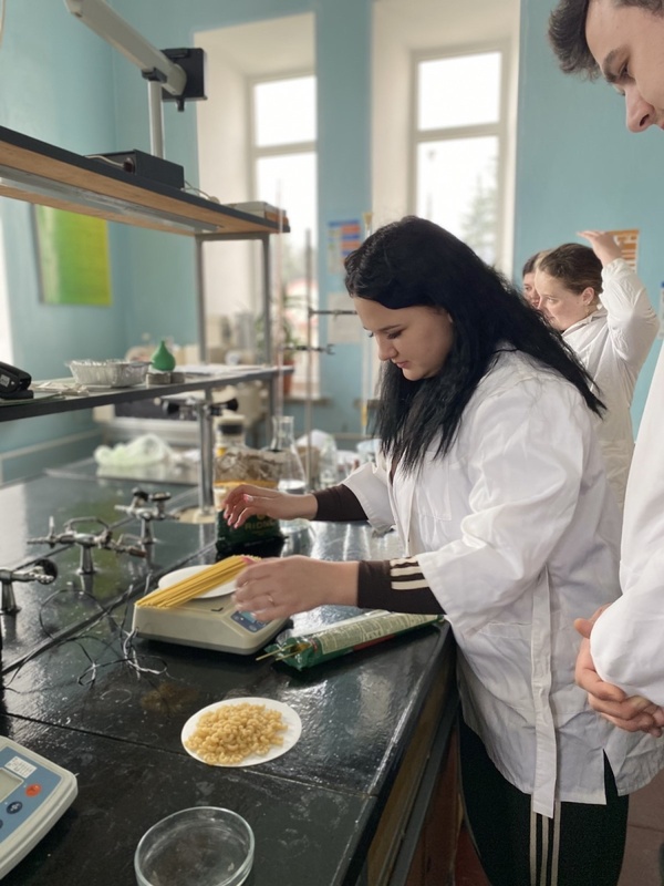 У процесі виконання лабораторної роботи здобувачі освіти працювали з відповідним лабораторним обладнанням, опановували методики проведення аналізів, здійснювали обробку та інтерпретацію отриманих результатів. Особлива увага приділялася дотриманню вимог стандартів щодо якості макаронних виробів, техніки безпеки та правильності оформлення результатів досліджень. За результатами проведених досліджень було здійснено порівняльний аналіз отриманих показників із вимогами чинної нормативної документації, що дозволило оцінити рівень якості досліджуваних зразків макаронних виробів та встановити їх відповідність встановленим стандартам.