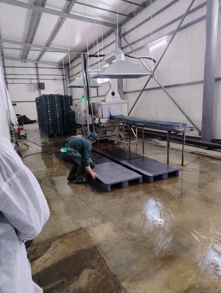 На напівавтоматичній сортувальній лінії здійснюється розподіл томатів за розміром, діаметром, забарвленням, а огірків – за масою та розміром. Власне, ми мали можливість наглядно побачити процес сортування і пакування огірка гладкого працівниками у ящики для постачання замовникам по 6 кг.
