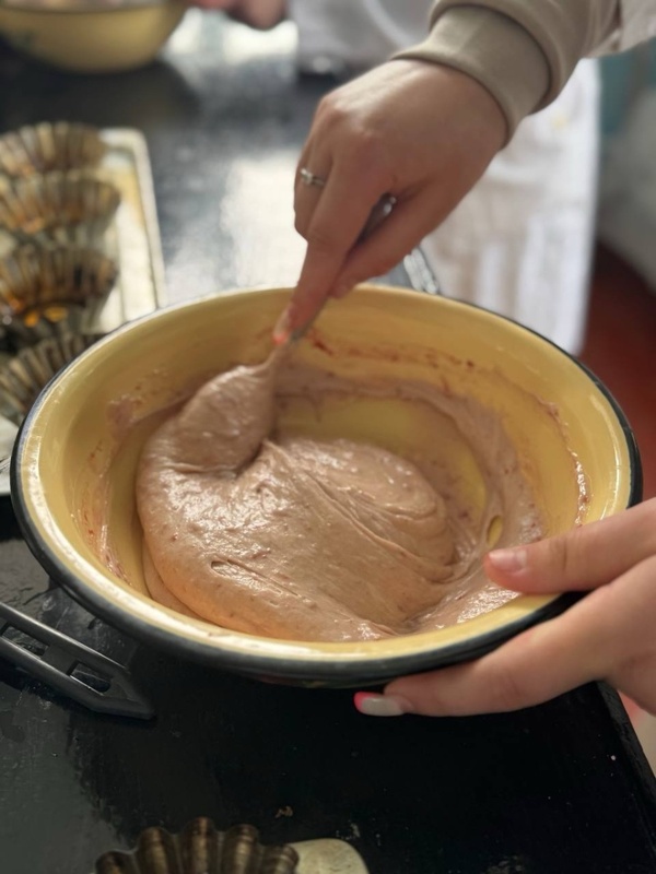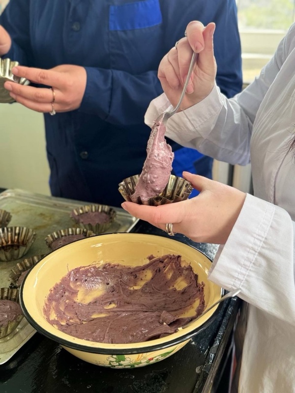Під час заняття учасники працювали з кількома варіантами рецептур. Зокрема, було виготовлено кекси з додаванням пюре лимону та порошку м’яти. Така комбінація надала виробам свіжого, злегка кислуватого смаку та приємного аромату, а також ніжного світло-жовтого відтінку з зеленими вкрапленнями. Окрему увагу було приділено кексам із гарбузовим пюре, яке забезпечило виробам м’яку текстуру, природну солодкість і насичений помаранчевий колір. Також учасники експериментували з пюре терену, що додало кексам легкої терпкості та оригінального смакового відтінку.